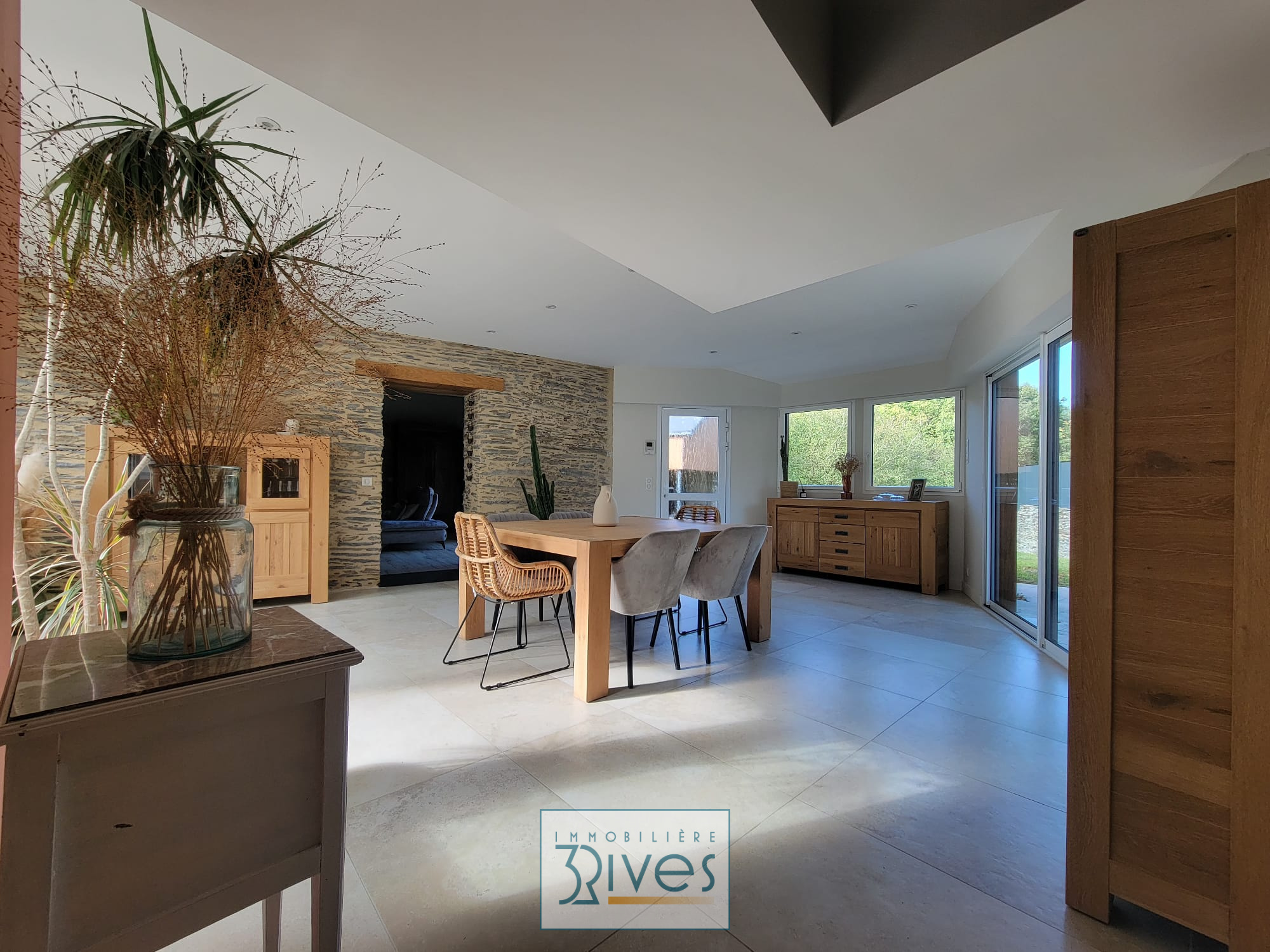 Au rez-de-chaussée, vous serez séduit par les volumes et la lumière. La superbe cuisine équipée est un véritable atout pour les passionnés de gastronomie. Elle s'ouvre sur un séjour convivial donnant accès à deux terrasses, parfaites pour profiter du soleil à toute heure de la journée. Le beau salon, avec son poêle, invite à la détente. Ce niveau dispose également d'une suite parentale pour plus de confort, d'un bureau, d'une chambre supplémentaire pouvant servir de chambre d'amis ou d'espace indépendant, d'une buanderie et d'un cellier.