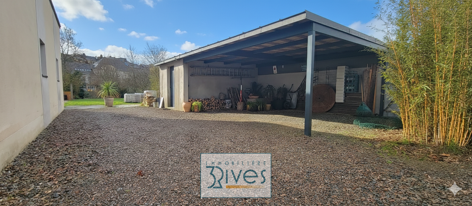 Un extérieur conçu pour la détente avec une piscine de 7 x 3,50 m, d’un carport pour vos véhicules et d’un atelier. Le tout sur un terrain de plus de 1100 m².