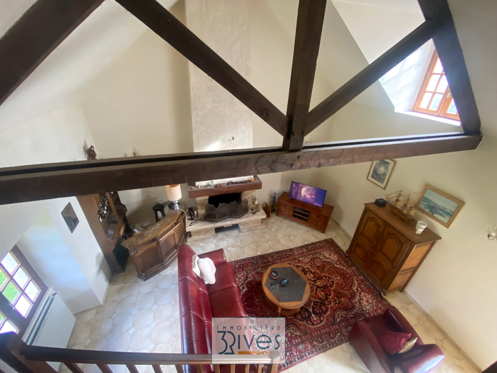 Au rez-de-chaussée : un espace de vie de 95 m² composé d'une cuisine aménagée et équipée, d'un séjour avec baie vitrée et d'un salon doté d'une cheminée ouverte avec plafond cathédrale, un bureau de 30 m², une salle de bains et wc. A l'étage : quatres chambres, une salle d'eau avec wc et une mezzanine.
