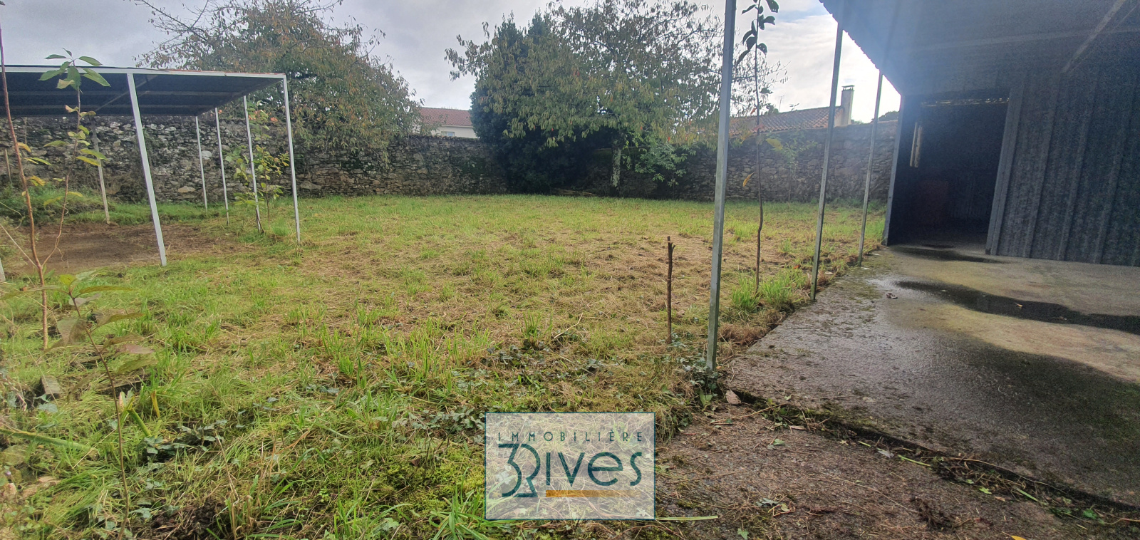 Détaché de la maison, à 20 metres, beau jardin clos de murs de pierre avec grand abri.
